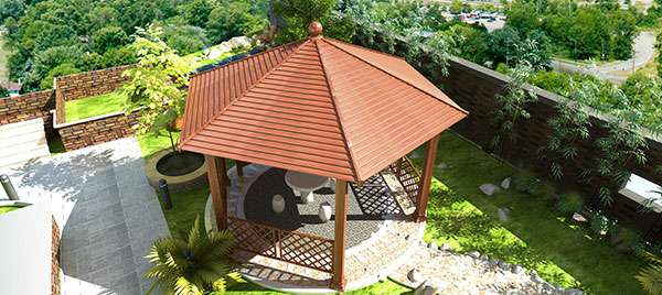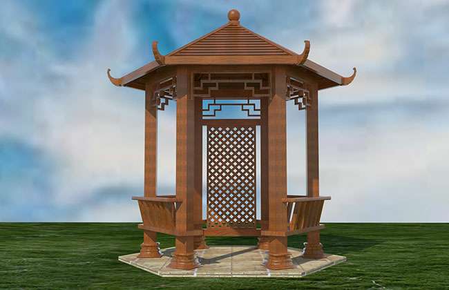 六角双层凉亭弯弧